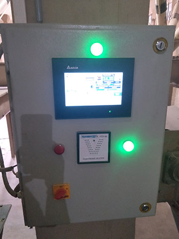 2. On the basis of Original Moisture content, throughput rate of product and desired moisture content, AMOC Electronic Control Unit calculates the amount of water to be added to the product. This is further displayed on HMID located on the Control Unit.